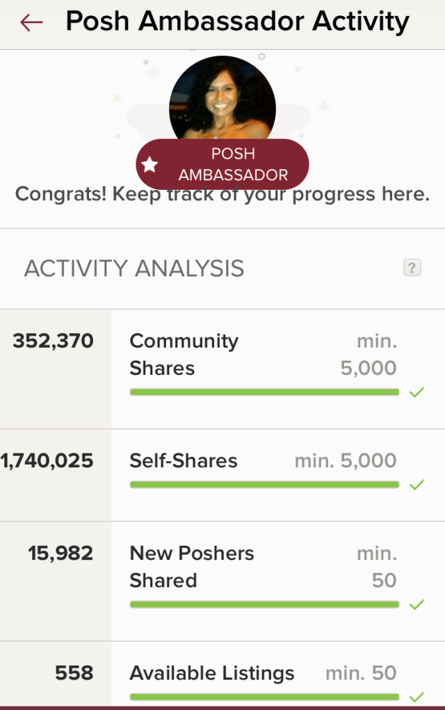 A Poshmark Ambassador is someone who uses and represents the Poshmark app well. You have met all the minimum criteria there is to achieve this status. You are seen as an active, buyer, seller, sharer and represent all that makes a great Posher. You have a great looking compliant closet while providing great customer service.