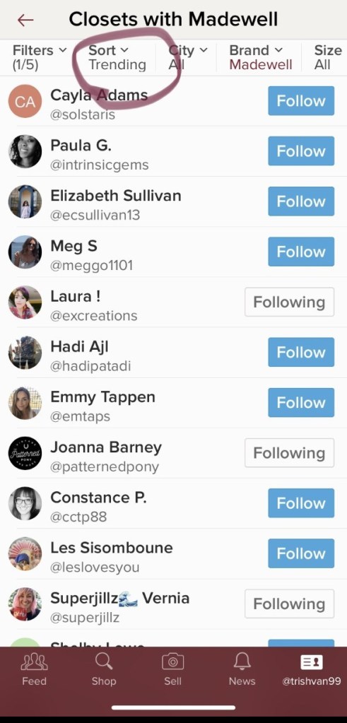 More on this. Yes, you could click on every closet and follow them, there is a great portion that will not follow you back. Many are smaller closets that have not gotten the hang of following. I tend to only follow closets that have many followers. and shares. I don’t bother following a closet with 5 items for sale with 0 shares and minimal followers.