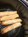 - Spray air fryer with non stick spray, place 6 taquitos in basket, (I make sure toothpick go into the holes in basket to keep in place. Spray with non stick spray and set air fryer to fry setting and cook for 5 minutes, turn, spray and cook another 5 minutes. Continue with the other half of taquitos.
